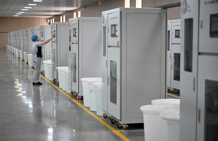 河南柘城惠丰钻石科技股份有限公司工人在金刚石微粉自动分选生产线上作业(6月11日摄)。新华社记者 李嘉南 摄