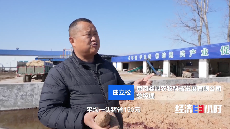 大型养殖企业降本增效主要靠科技手段,而中小养殖户更多则是需要精打细算。日常喂养上,曲立松琢磨出一些民间土办法。他从附近酒厂低价买回酒糟,这种发酵物里面含有多种蛋白质、氨基酸等营养物,可替代一部分豆粕。连做粉条后废弃不用的红薯渣,曲立松也变废为宝,用来做免费的猪饲料。